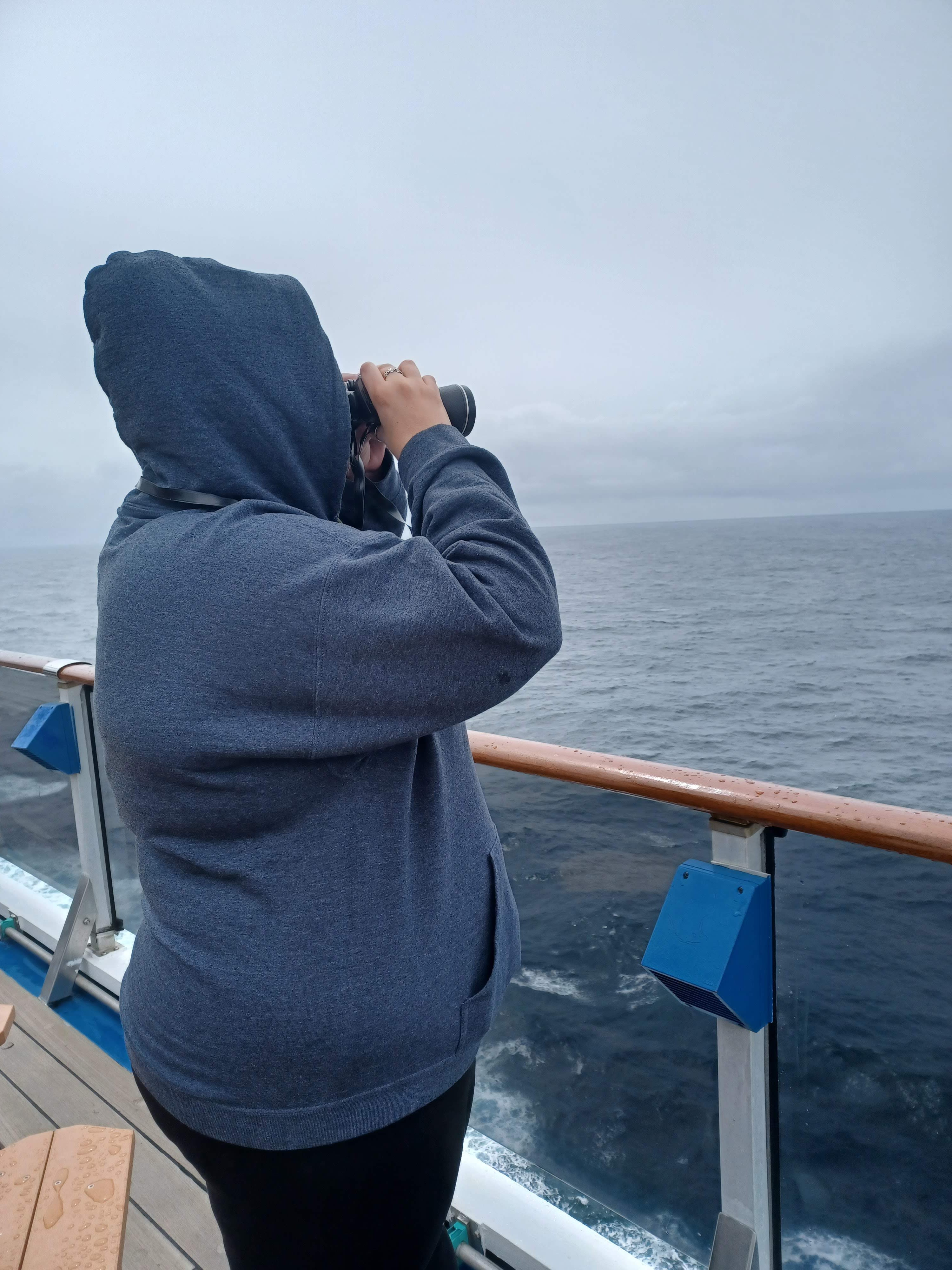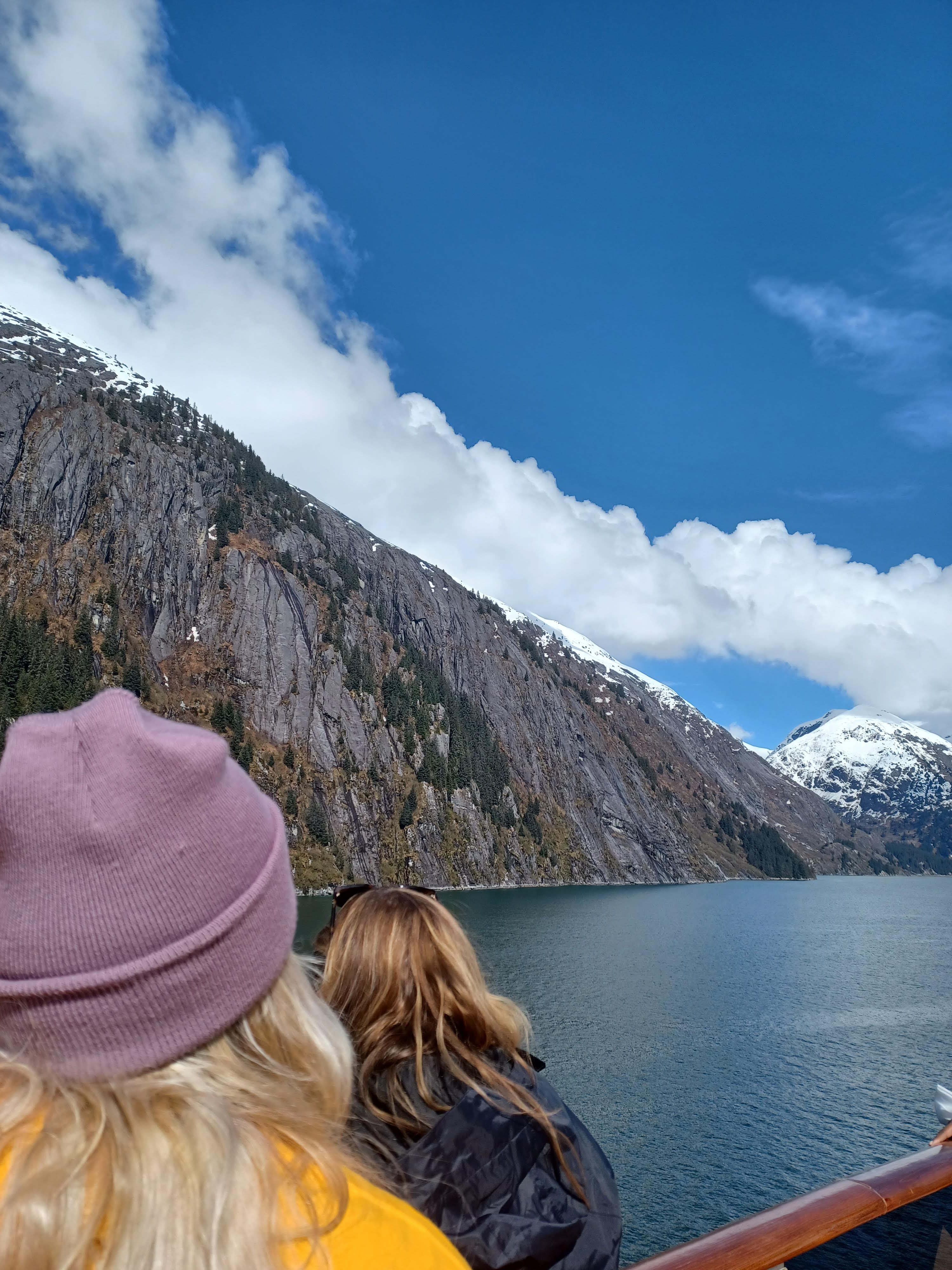 because my internet time is so scarce, I want to tell my stories in depth and with time for lots of pictures. We coasted through the Tracy Arms Fjord during our second day of cruising, which is, as per described by the little Details tab on our itinerary, a narrow and deep inlet of sea usually formed by the sinking of a glaciel valley.” Pretty freaking neat, right? We didn’t dock anywhere, but I think I’m more than content floating through sunken glaciel valleys as I dip in the hot tub. My first thoughts were “Wow”. The thoughts that followed were something like “What the hell are we doing?” Because, my God, what the hell are we doing? What are we doing working, doing things other than creating or nurturing or loving? What are we doing exerting our energy being so worried about making others happy, about how we look in pictures or how people perceive us? And not just online. So often people blame social media for our societal downfall but how dense do you have to be to not realize this is a long time coming. Technology should be aiding us in so many ways, but we as humans fuck it up. The glaciel valleys were beautiful. But they were rocky. Rocky rocky rocky, my own cruise ship caused rippled and cracks in the frozen ocean water. Beautiful days, clear nights, and all I saw were birds. And that’s because they can fly away! The others critters hid. I don’t blame them. Sometimes I want to, too.